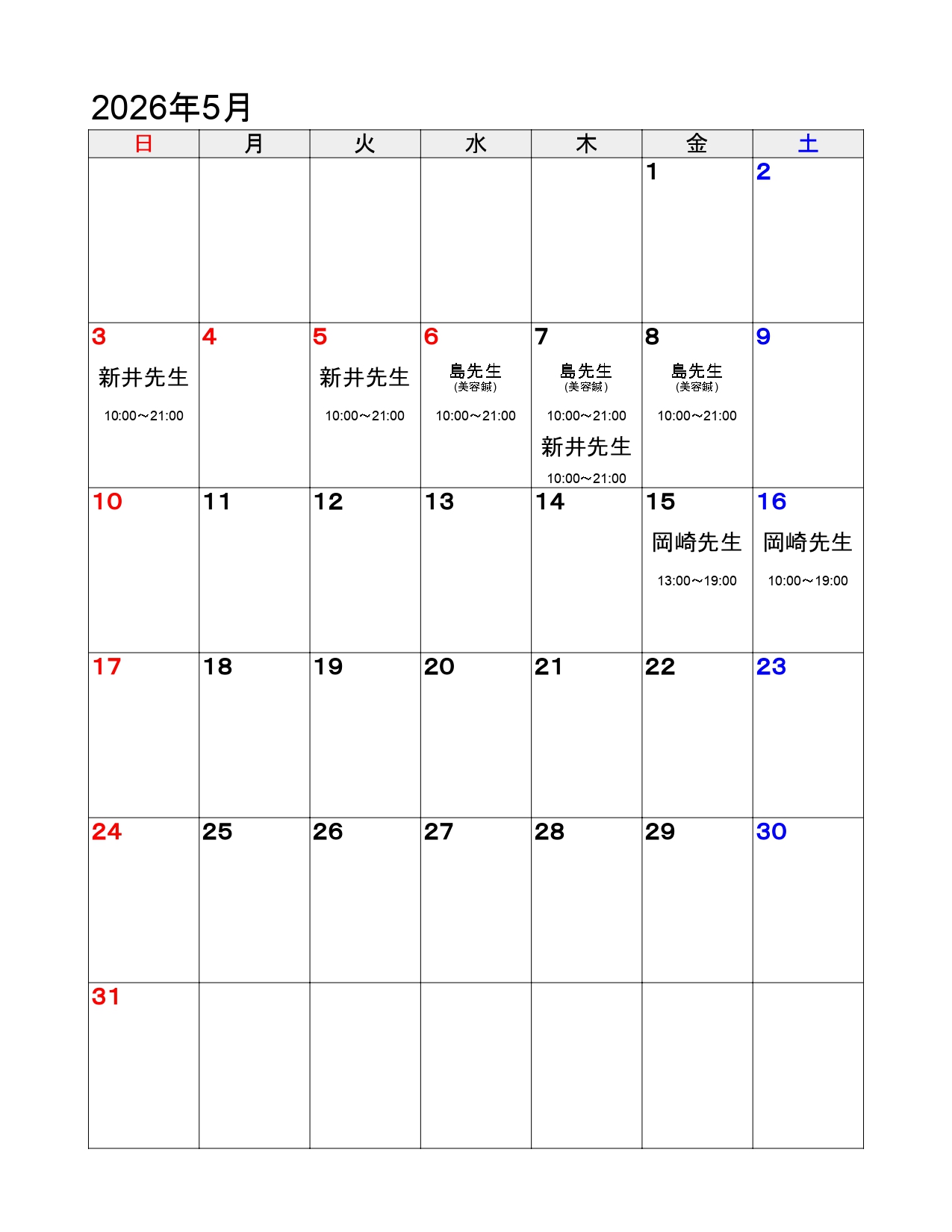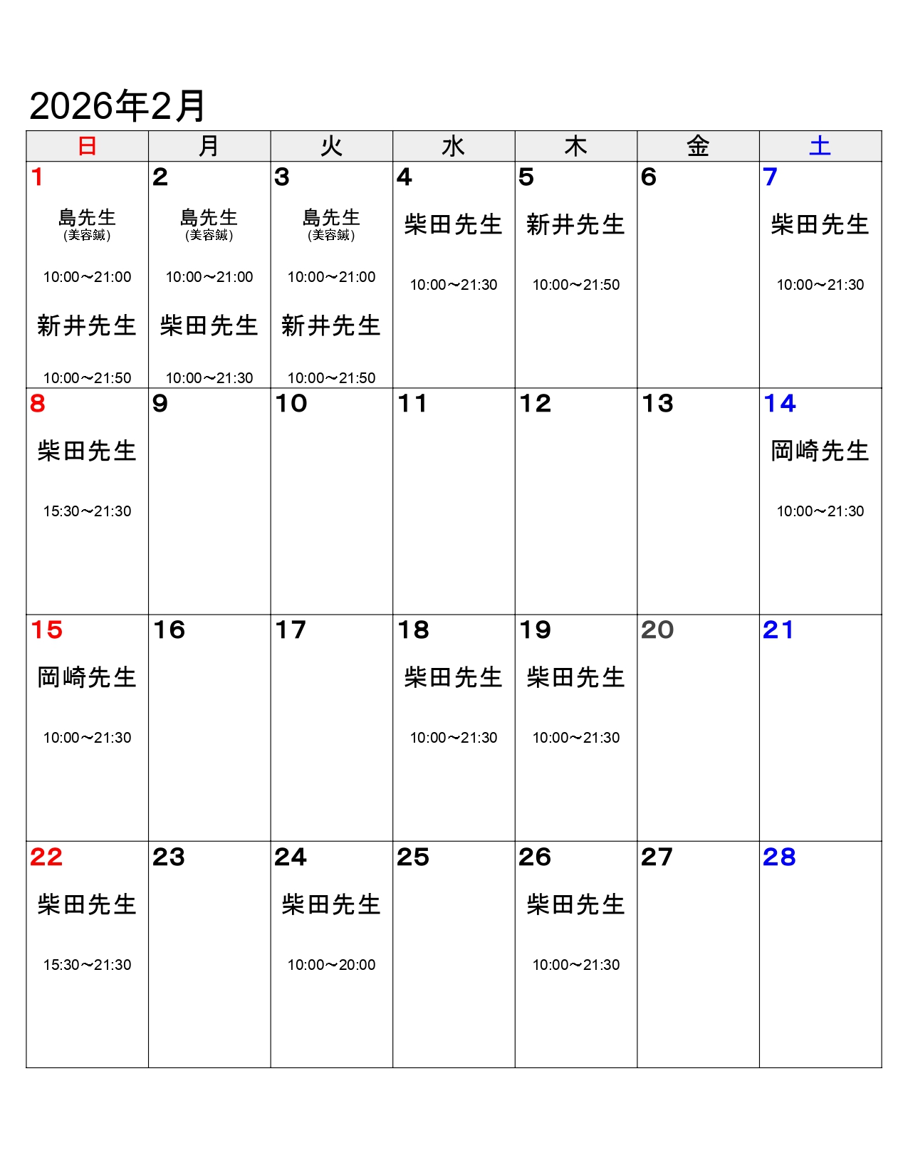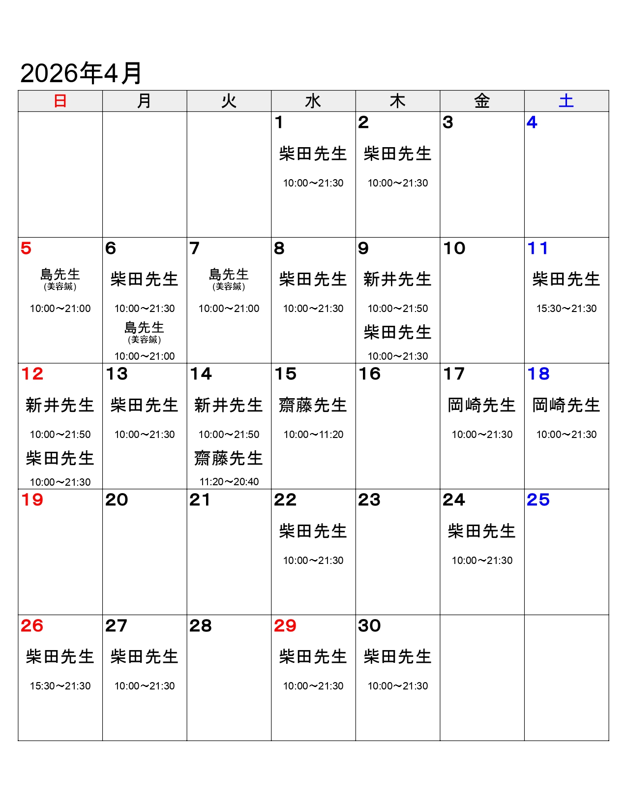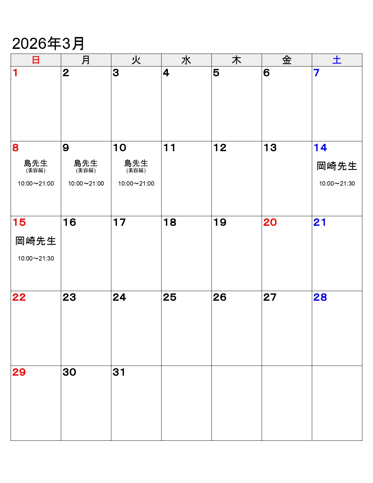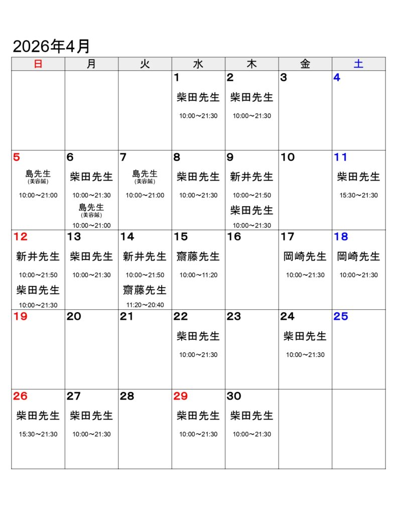 治療家スケジュール